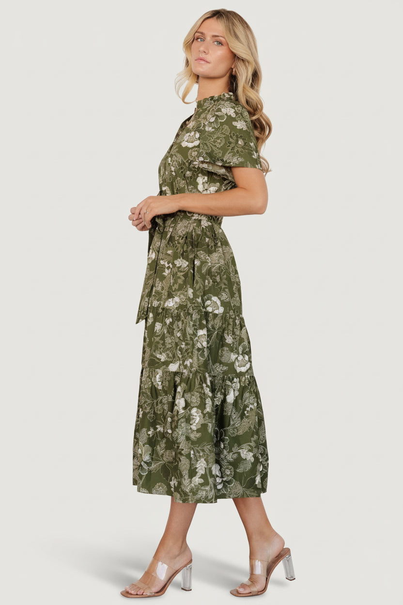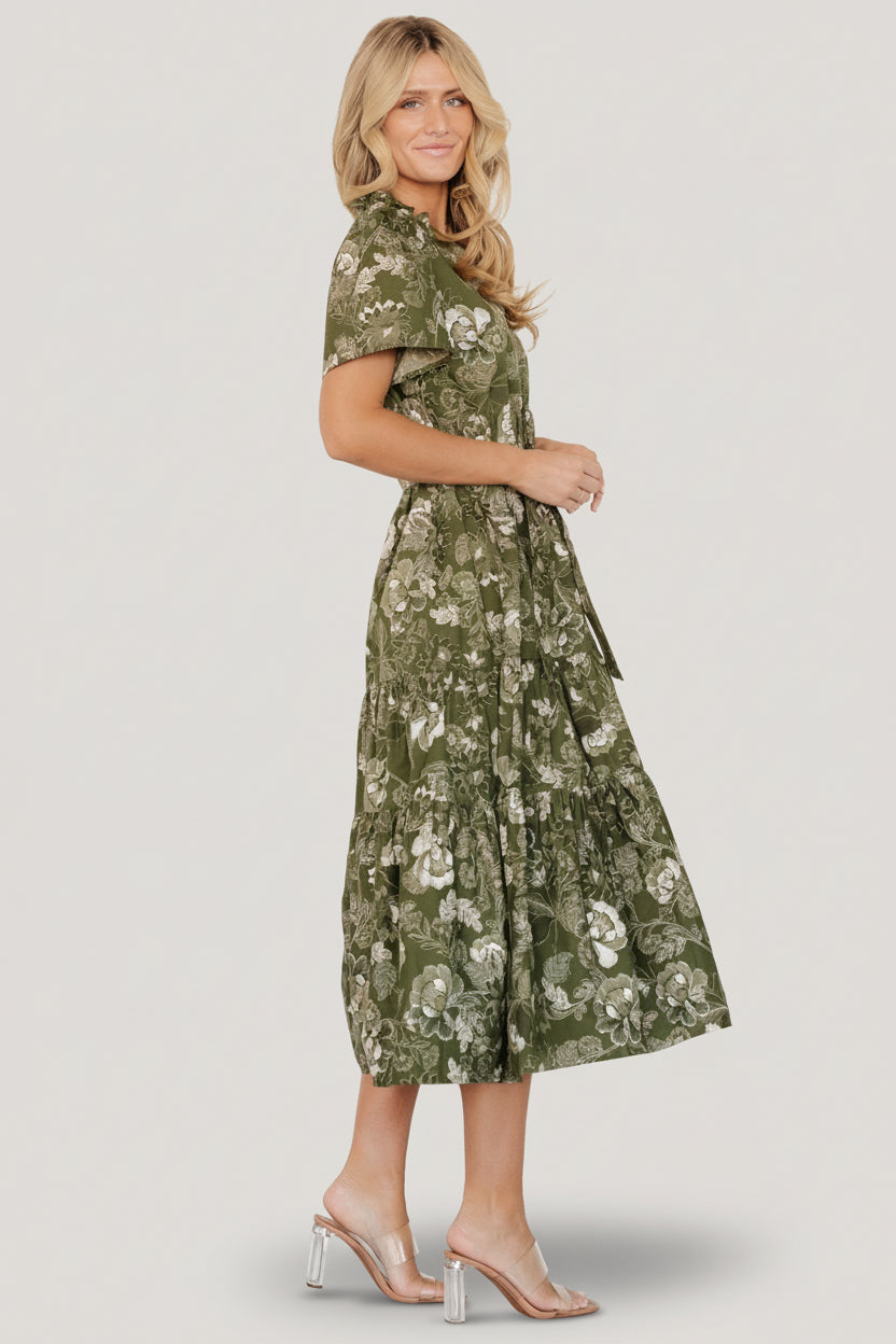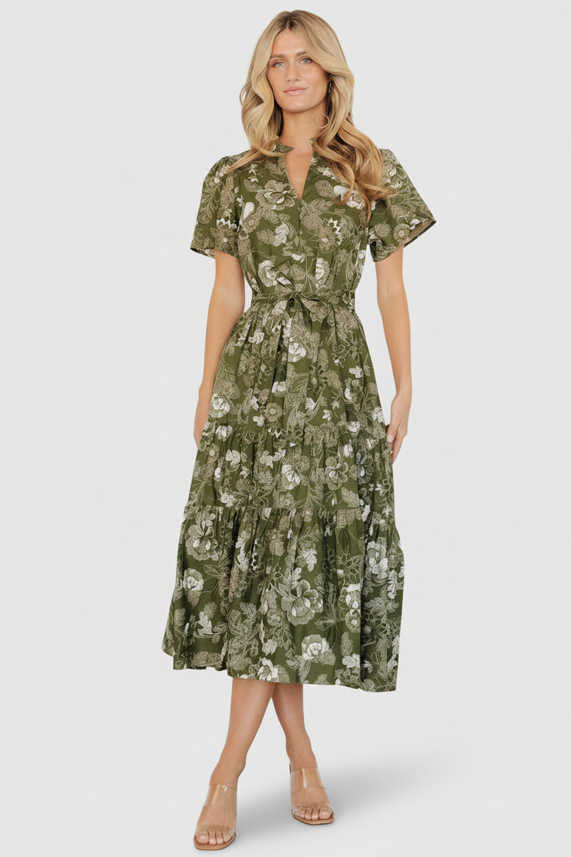 - Enjoy lovely florals in this flowing midi dress