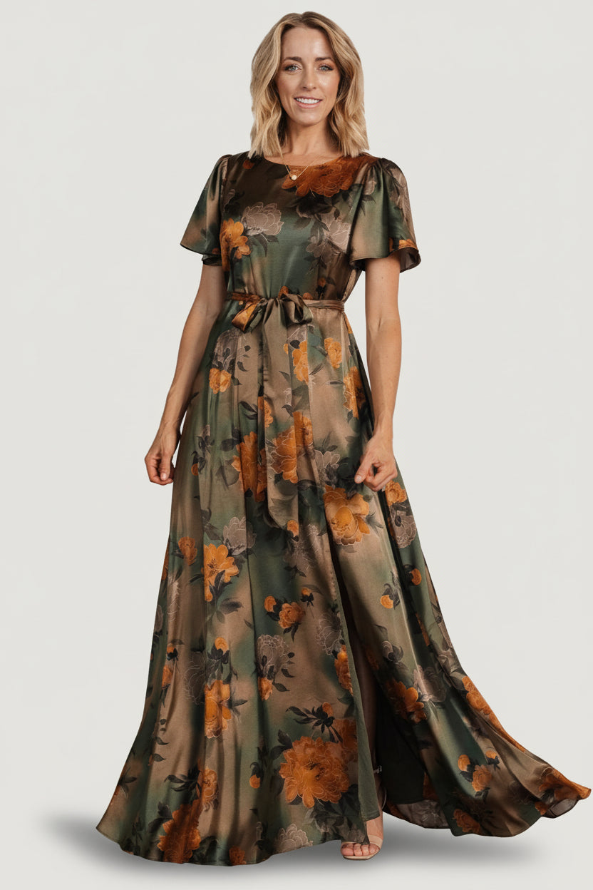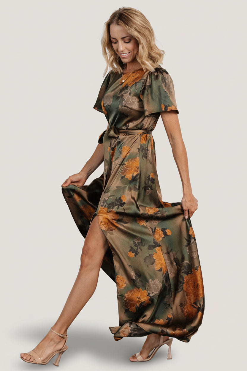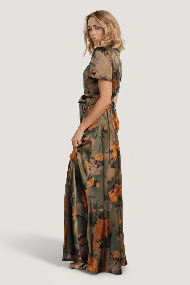 Agnes Satin Maxi Dress | Olive Floral