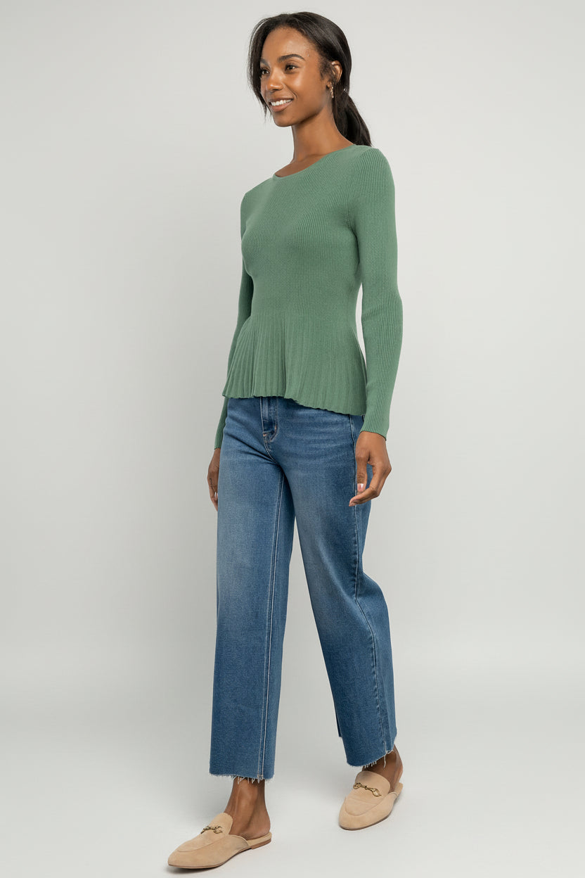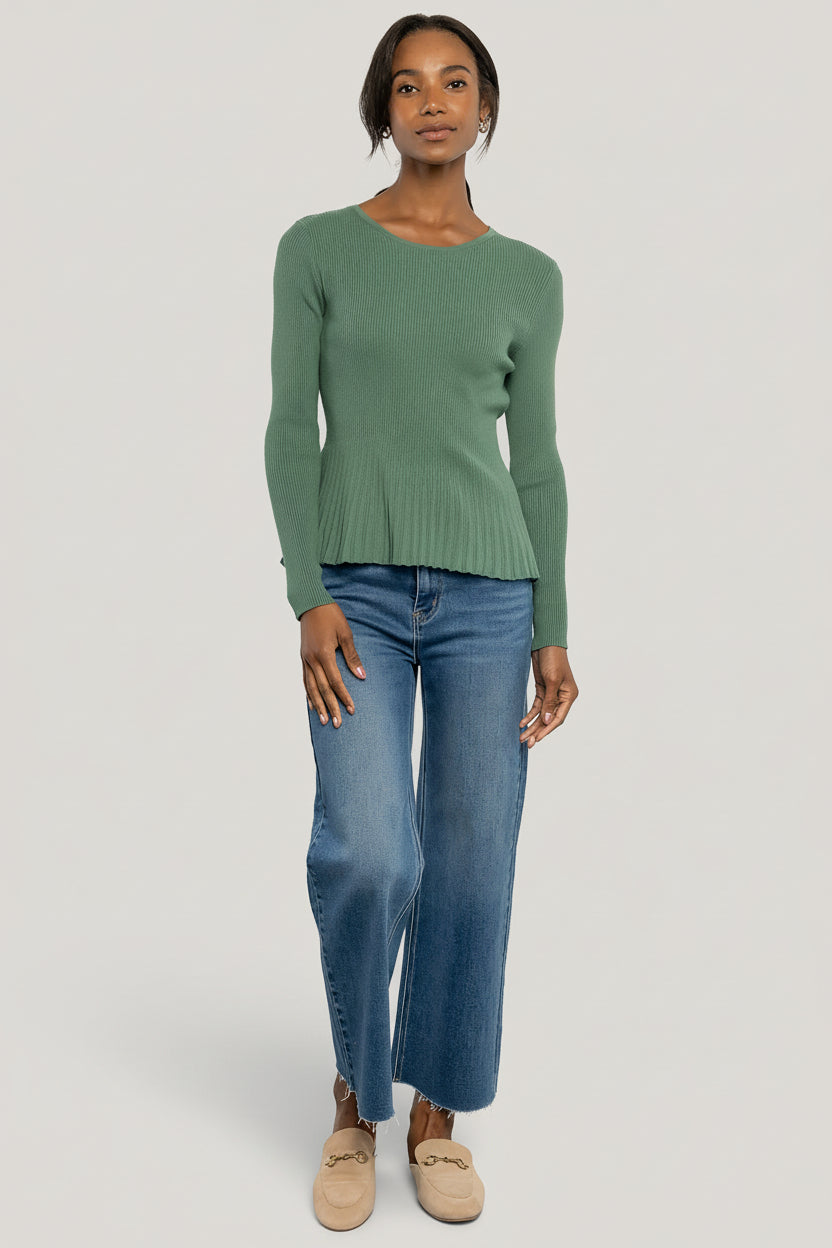 - Fitted bodice with contrast ribbed peplum