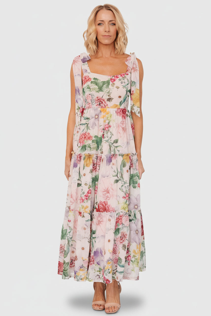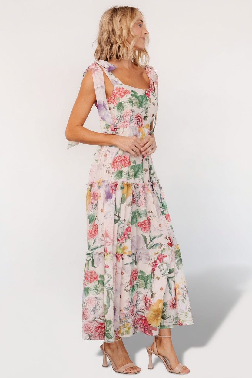 - Blush pink background with beautiful multicolored florals