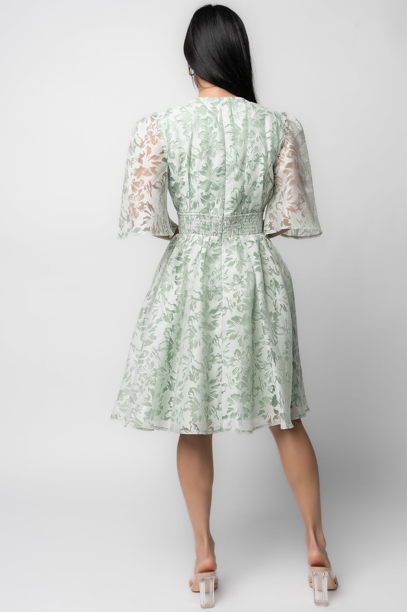 - Back zipper with smocking
