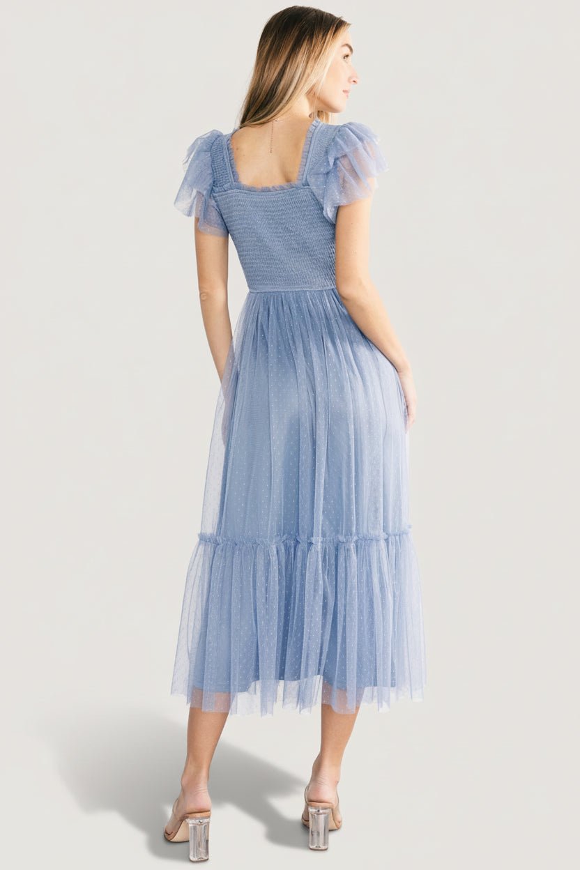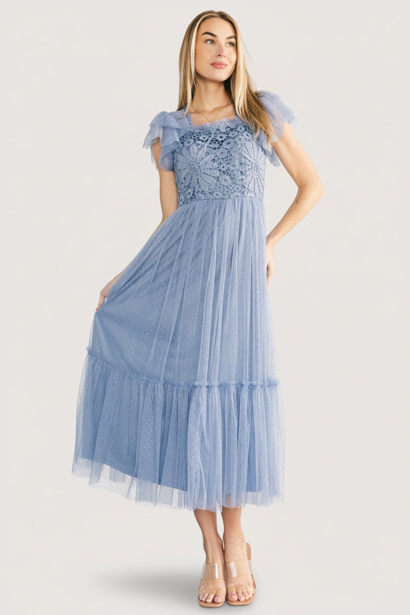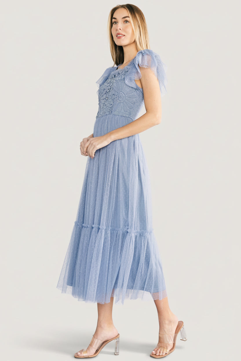 - Swiss dot mesh with lace embellishment
