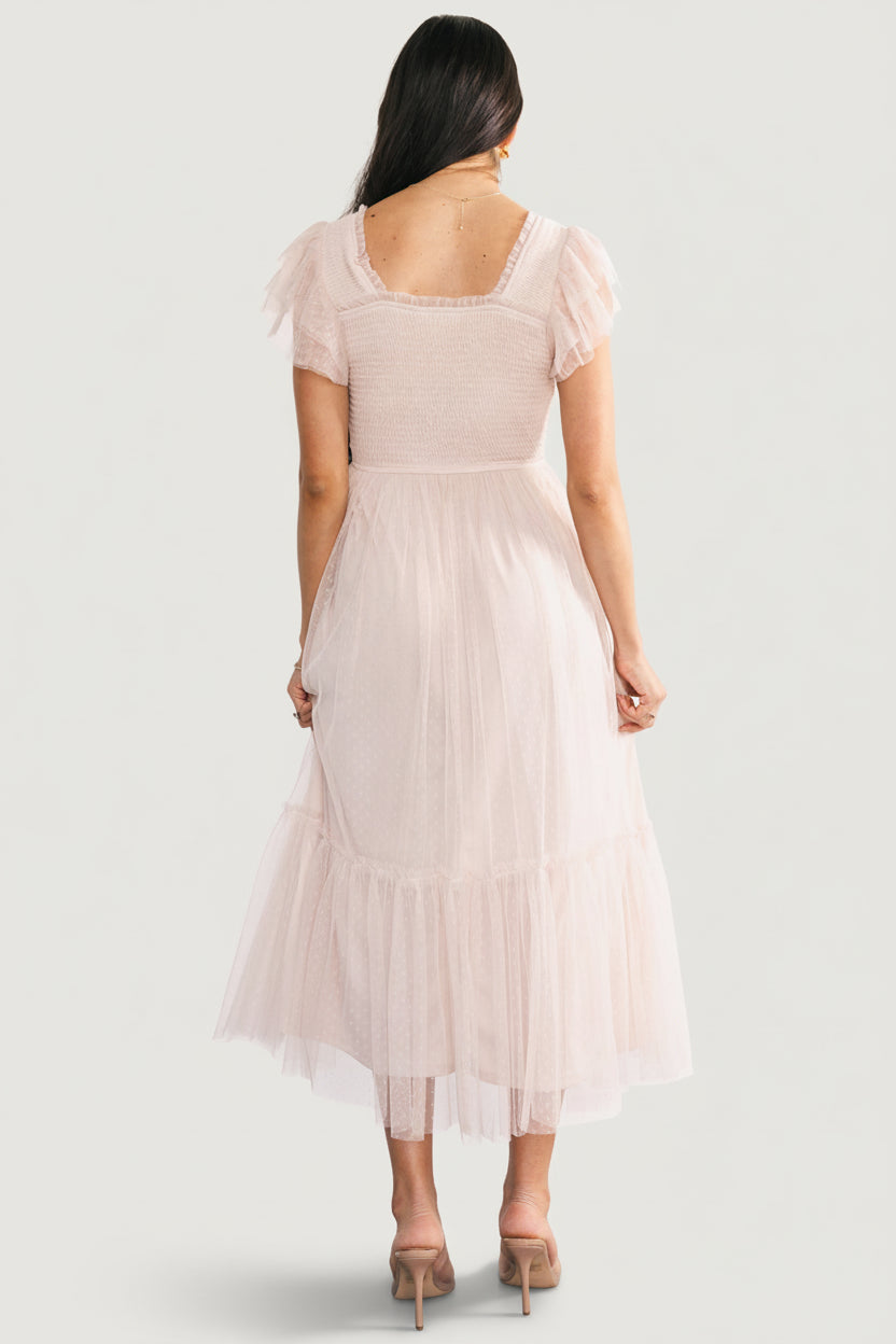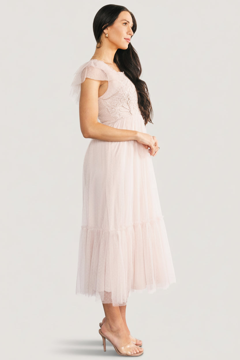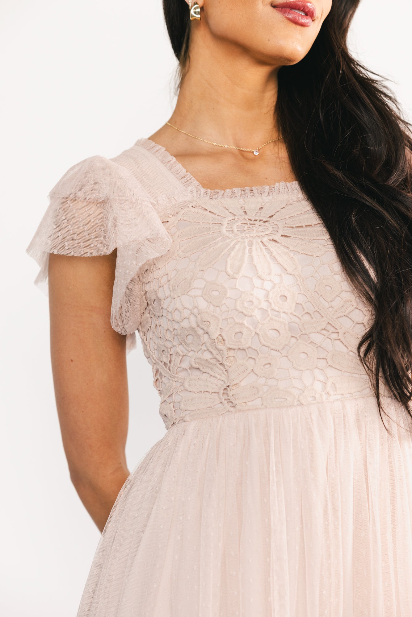 - Swiss dot mesh with lace embellishment