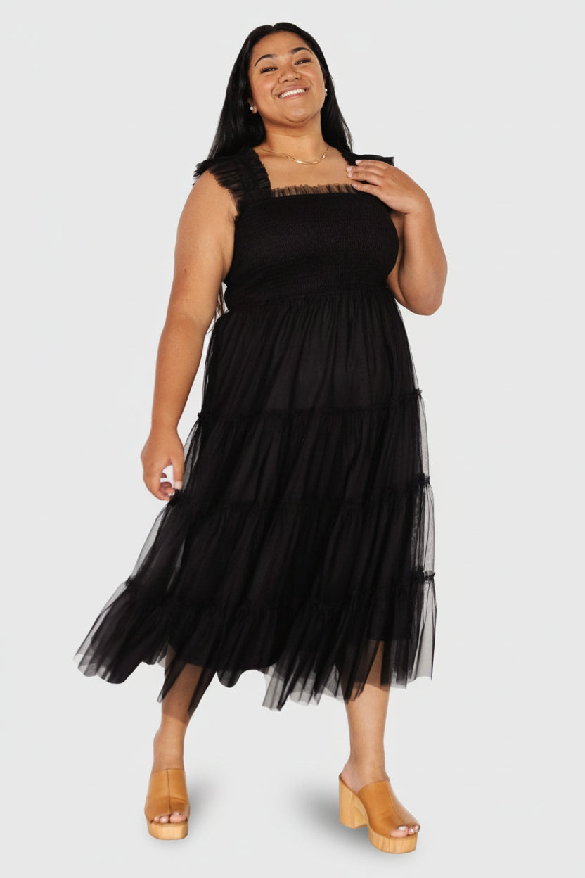 Emma Smocked Tulle Dress | Black