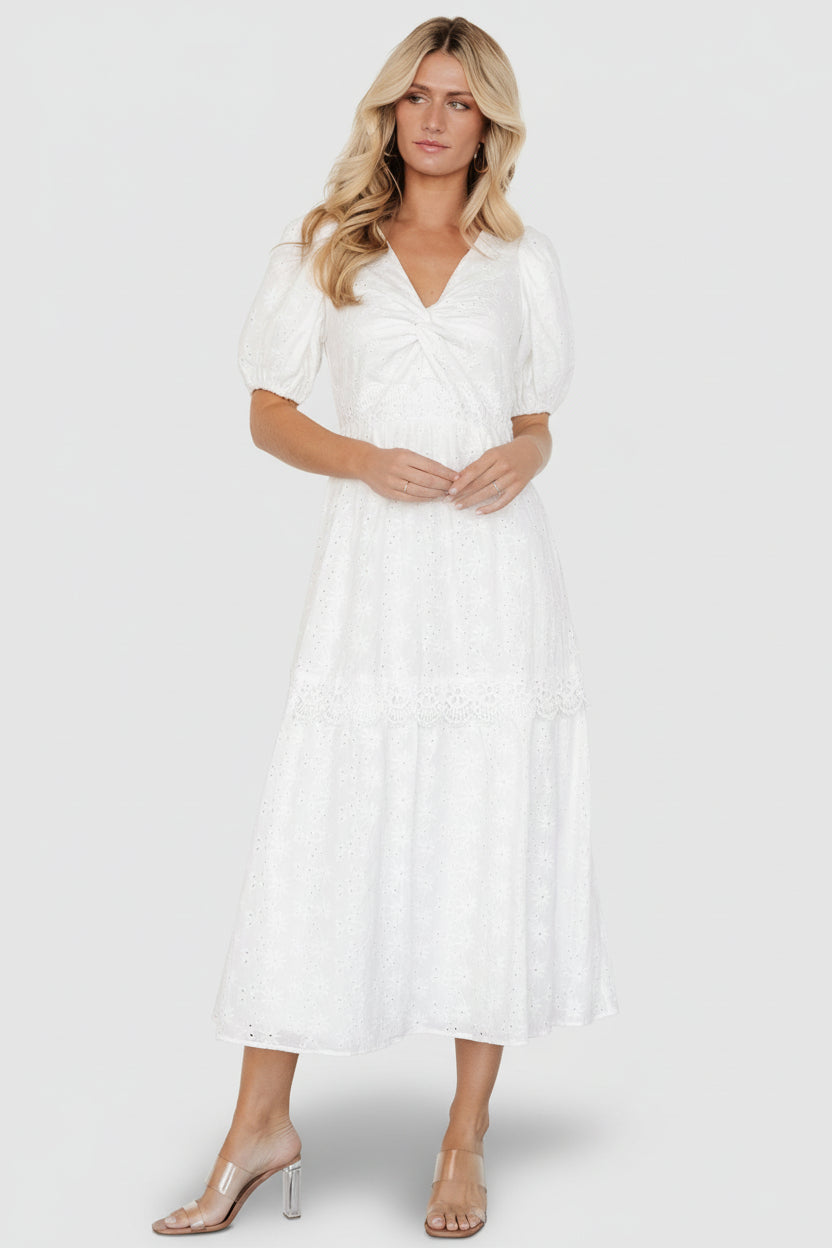 - Floral eyelet detailing throughout