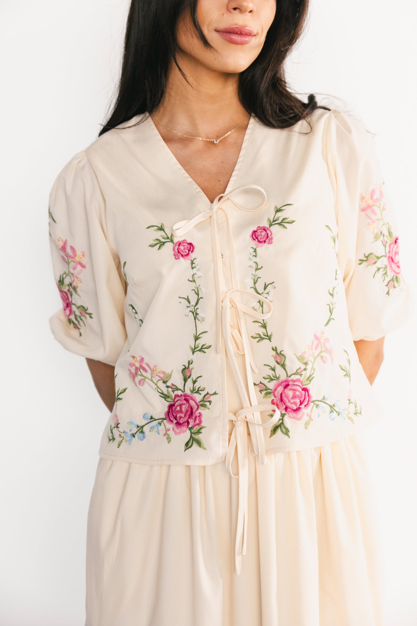 - Puff sleeves with elastic cuffs