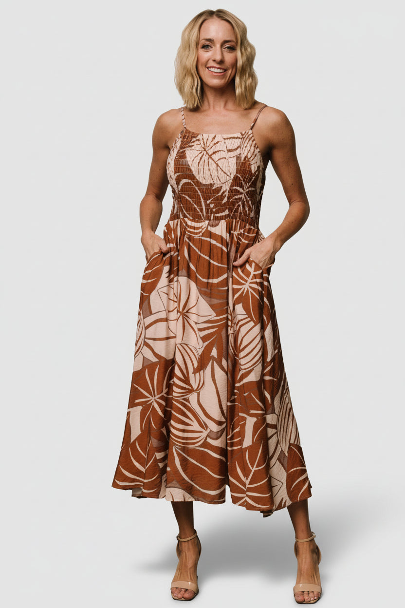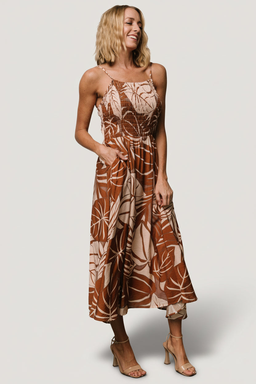 - Cream and camel leaf print