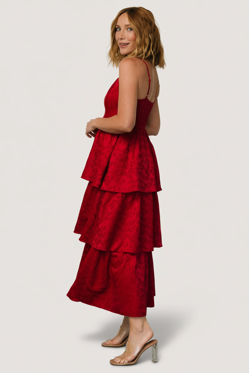 - Three overlapping tiers on skirt